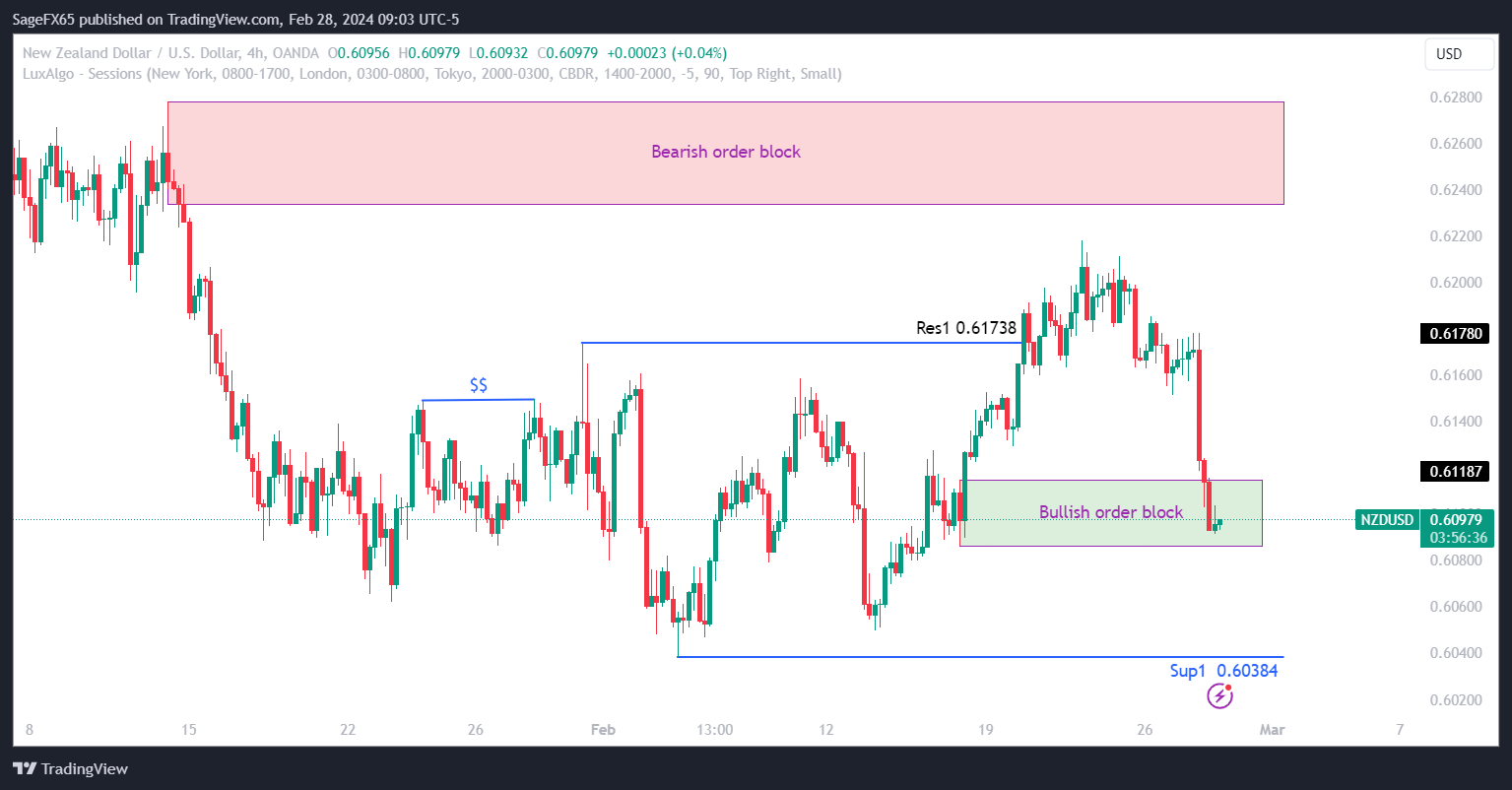 تحليل يوضح أهم المستويات والبيانات الاقتصادية على زوج NZDUSD اليوم 28/2/2024