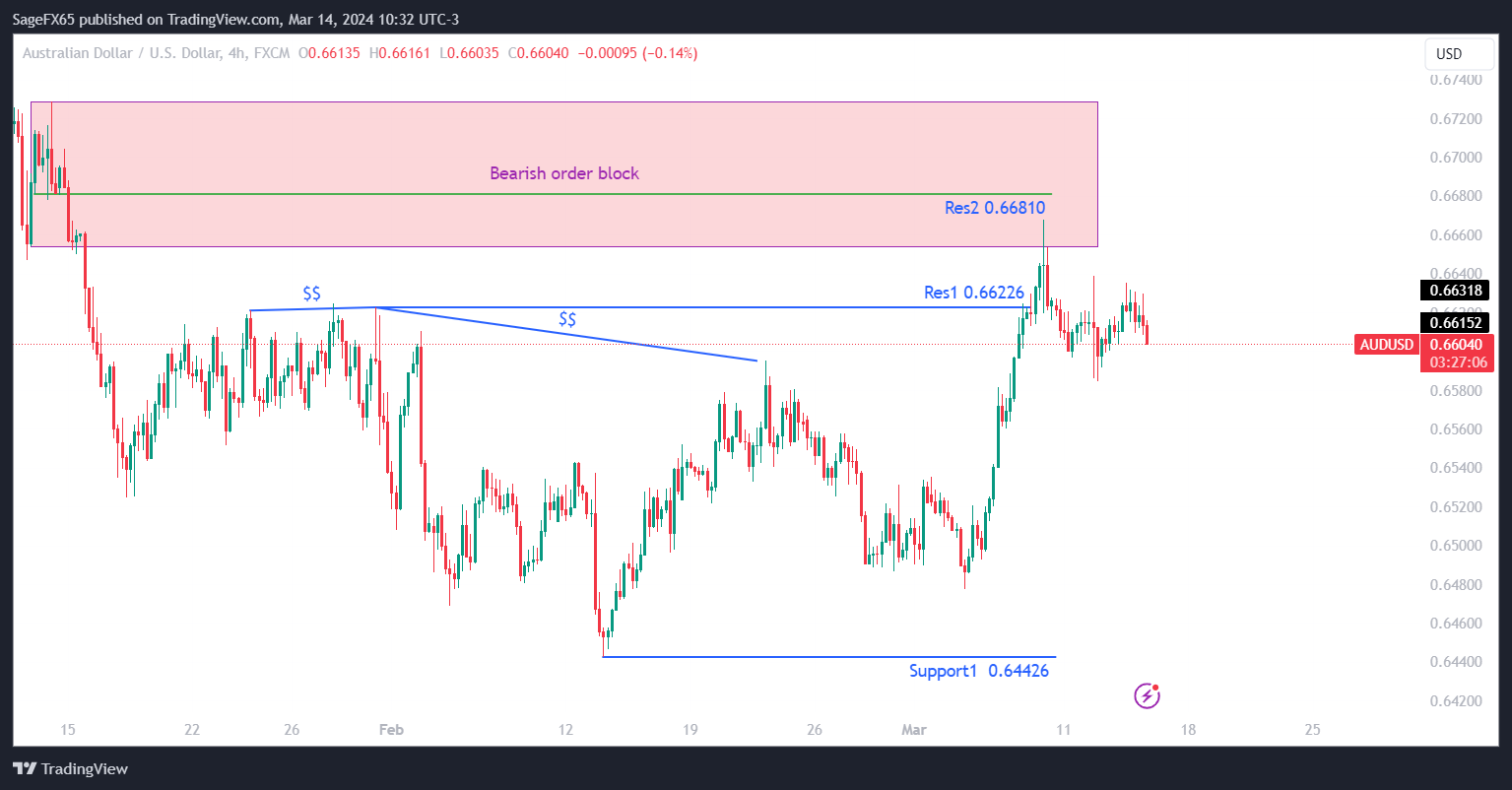 تحليل يوضح أهم المستويات والبيانات الاقتصادية على زوج AUDUSD اليوم 14/03/2024