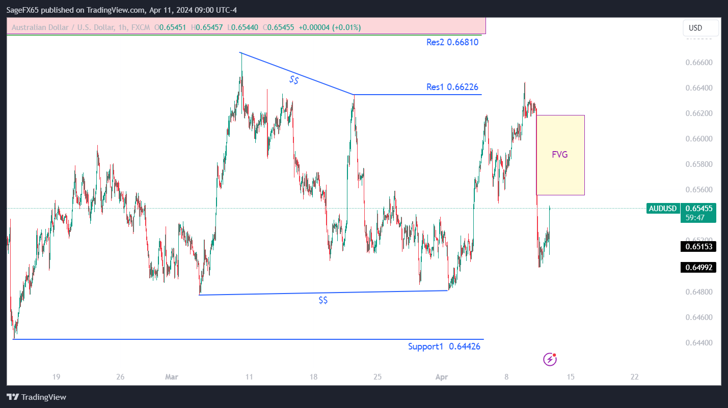 تحليل يوضح أهم المستويات والبيانات الاقتصادية على زوج AUDUSD اليوم 11/04/2024