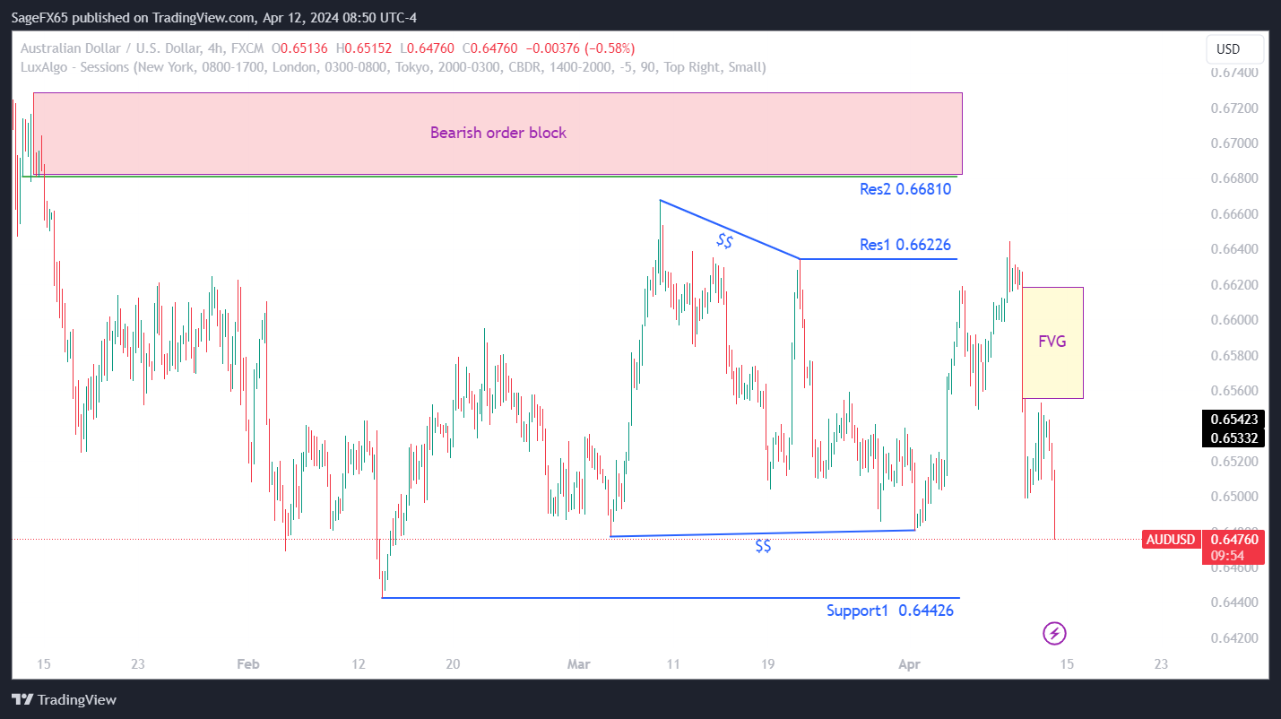 تحليل يوضح أهم المستويات والبيانات الاقتصادية على زوج AUDUSD اليوم 12/04/2024