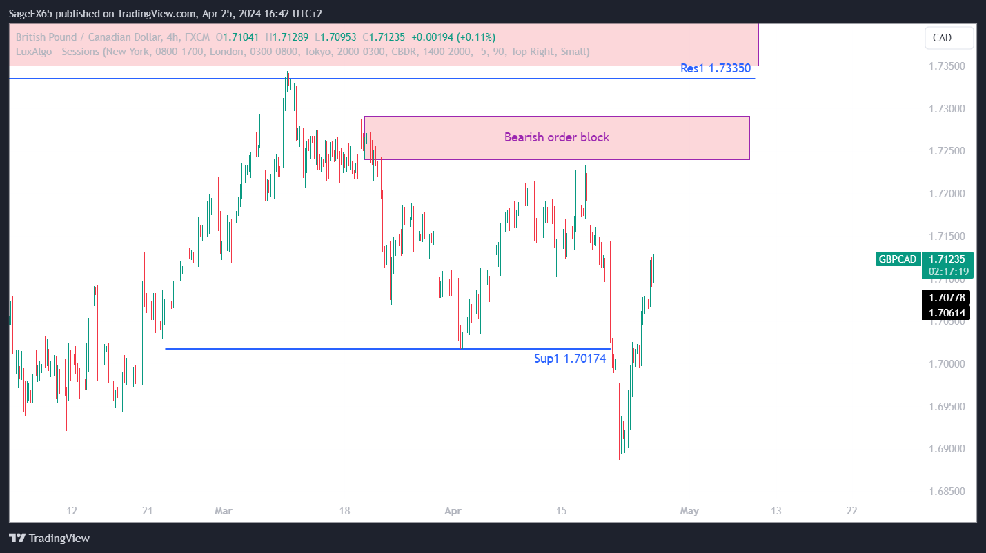 تحليل يوضح أهم المستويات والبيانات الاقتصادية على زوج GBPCAD اليوم 25/04/2024