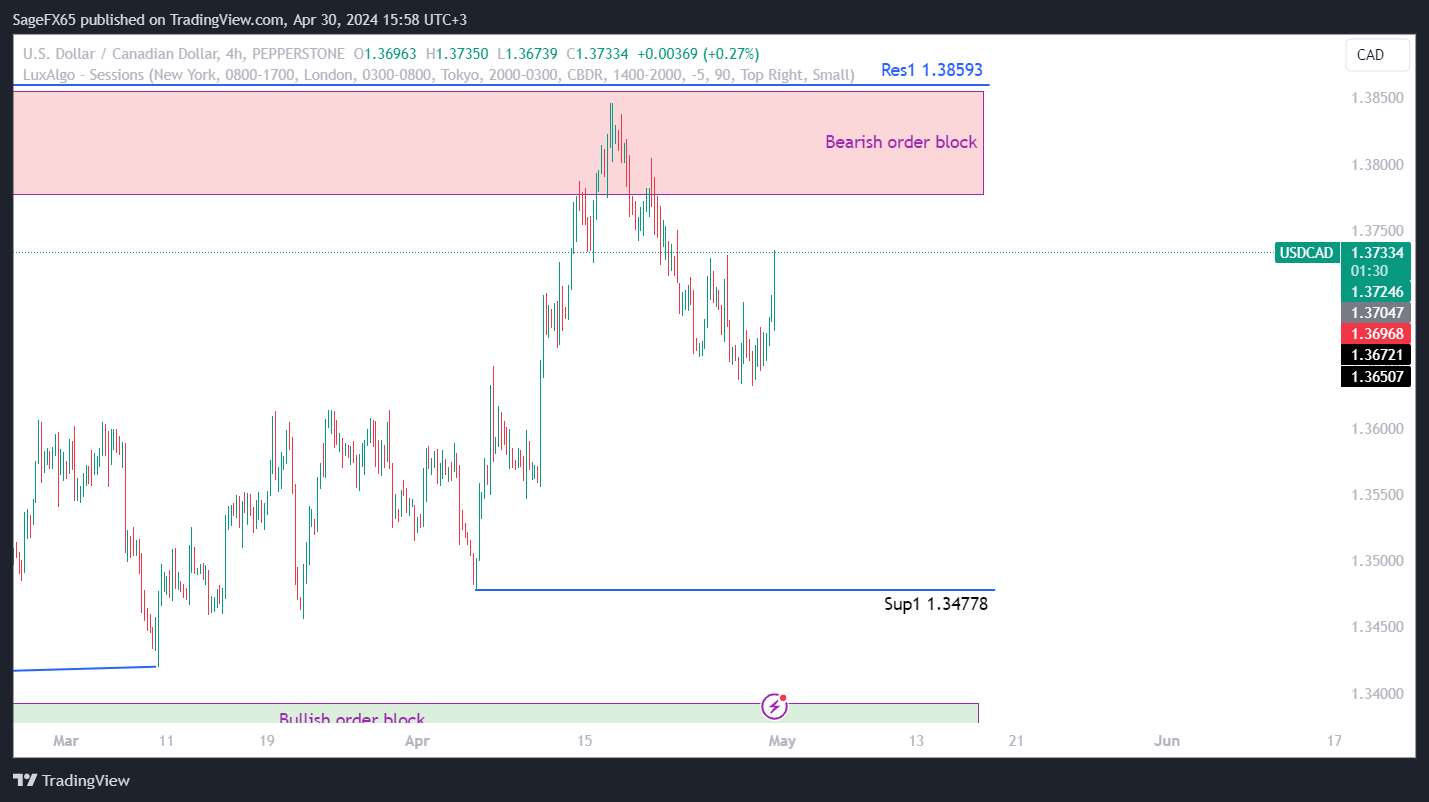 تحليل يوضح أهم المستويات والبيانات الاقتصادية على زوج USDCAD اليوم 30/04/2024