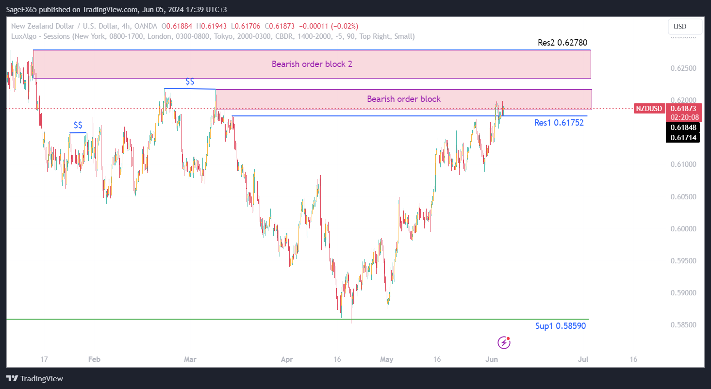 تحليل يوضح أهم المستويات والبيانات الاقتصادية على زوج NZDUSD اليوم 05/06/2024