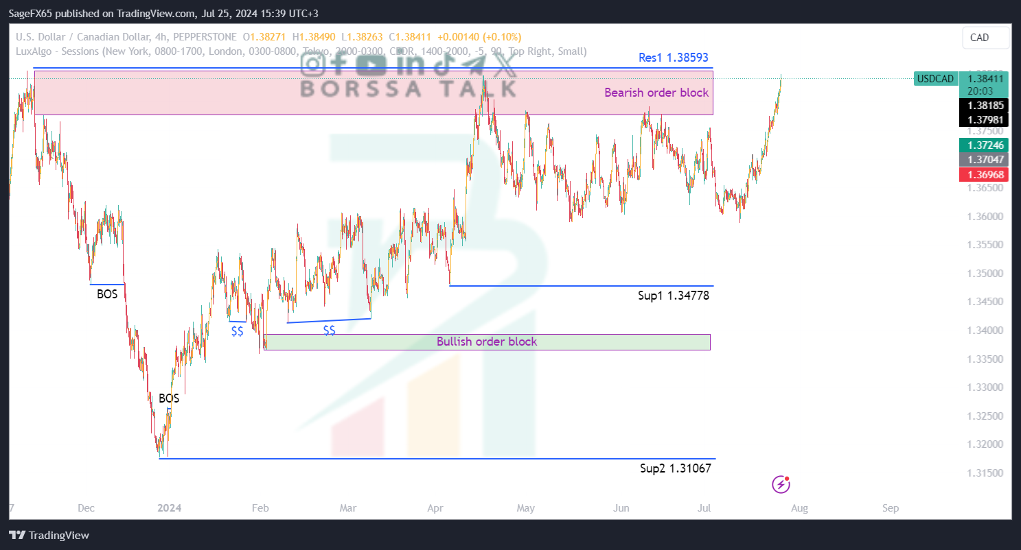 تحليل يوضح أهم المستويات والبيانات الاقتصادية على زوج USDCAD اليوم 25/07/2024