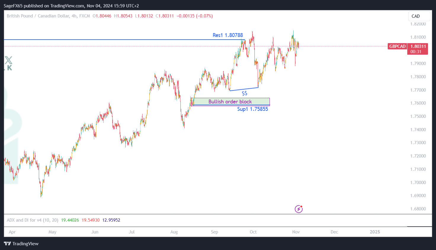تحليل يوضح أهم المستويات والبيانات الاقتصادية على زوج GBPCAD اليوم 04/11/2024