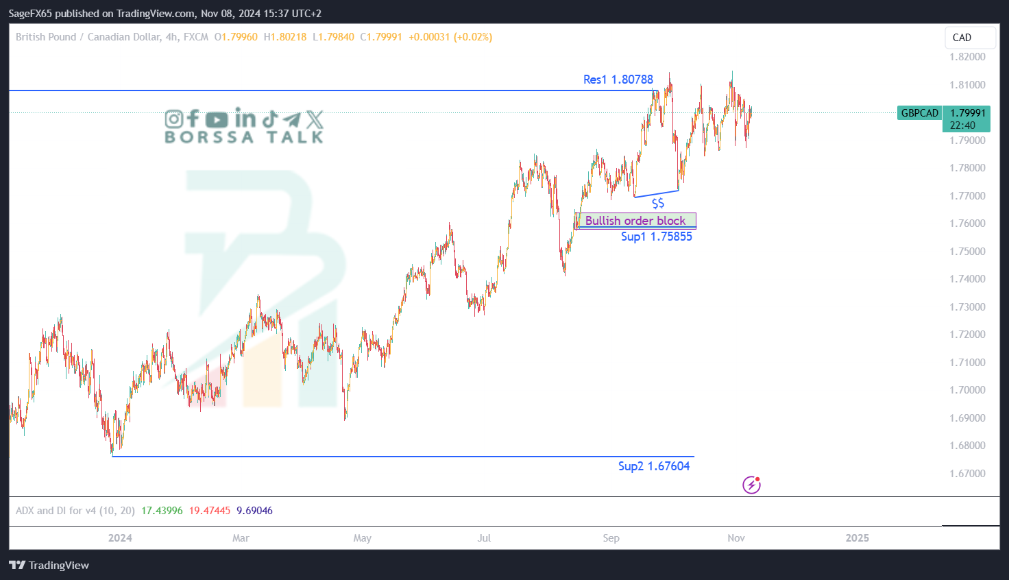 تحليل يوضح أهم المستويات والبيانات الاقتصادية على زوج GBPCAD اليوم 08/11/2024