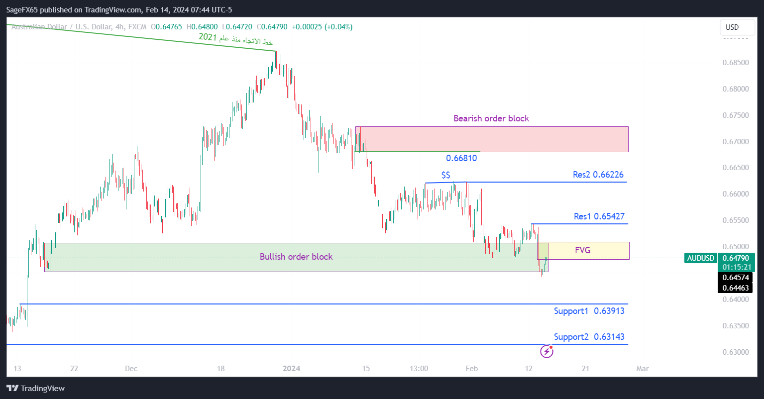 تحليل يوضح أهم المستويات والبيانات الاقتصادية على زوج AUDUSD اليوم 14/2/2022