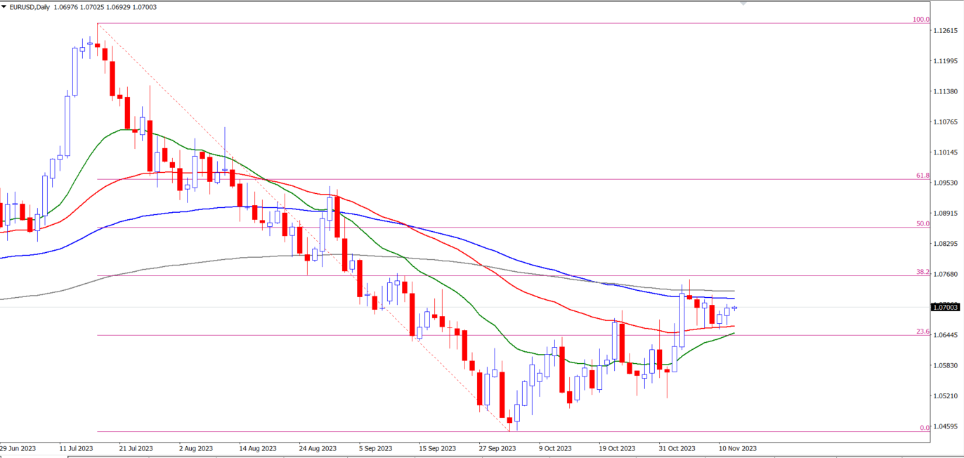 زوج اليورو / دولار حالياً يواجه منطقة مقاومة بين 1.0715 – 1.0730 متمثلة في المتوسط المتحرك لـ 100 يوم و 200 يوم، ومنطقة دعم حول المستوى 1.0660 متمثلة في المتوسط المتحرك لـ 50 يوم.