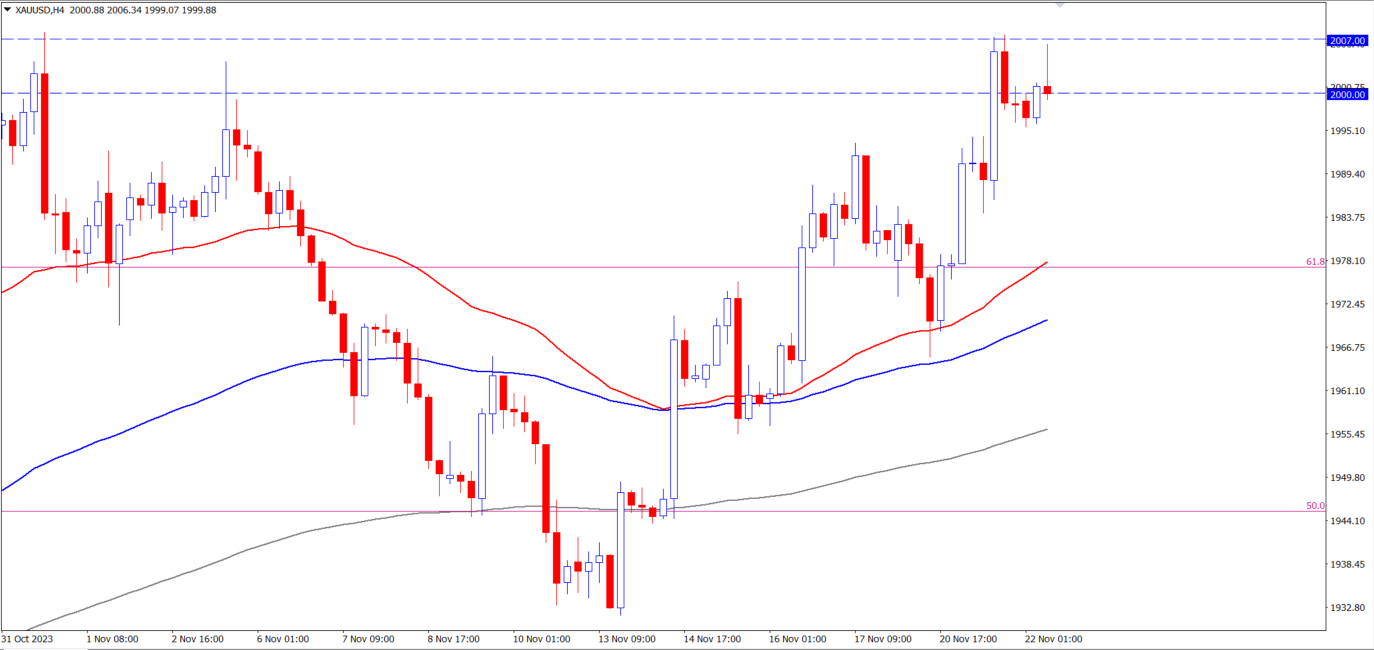 وبالنظر إلى أسعار الذهب الحالية فنجد المستوى 2000 دولار للأونصة لا يزال يمثل عائق أمام السعر الذي يحاول الحفاظ على التداول فوقه، ولكن الذهب في حاجة إلى المزيد من الدعم وقد يحصل عليه بعد البيانات الأمريكية اليوم إذا جاءت في صالحه.