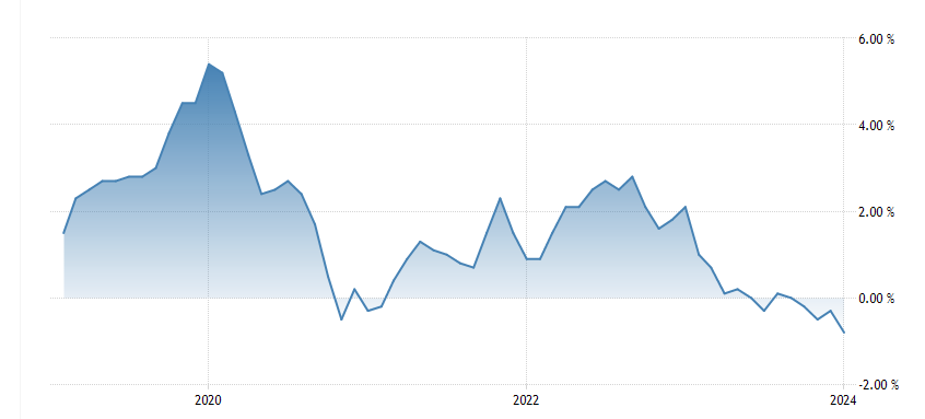 شهدت معدلات التضخم في الصين أسرع وتيرة انكماش منذ أكثر من 14 عام خلال شهر يناير الماضي، الأمر الذي يدل على تعمق الأزمة الحالية التي تواجه ثاني أكبر اقتصاد في العالم، ليزيد من الضغط على صناع السياسة النقدية لاتخاذ المزيد من الإجراءات لدعم الاقتصاد الهش.